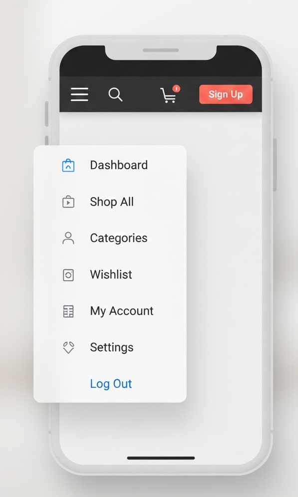 Common on mobile sites to save screen space. Hamburger menus hide navigation behind an icon, so combine them with visible key actions like search, cart, or a prominent CTA to reduce friction.